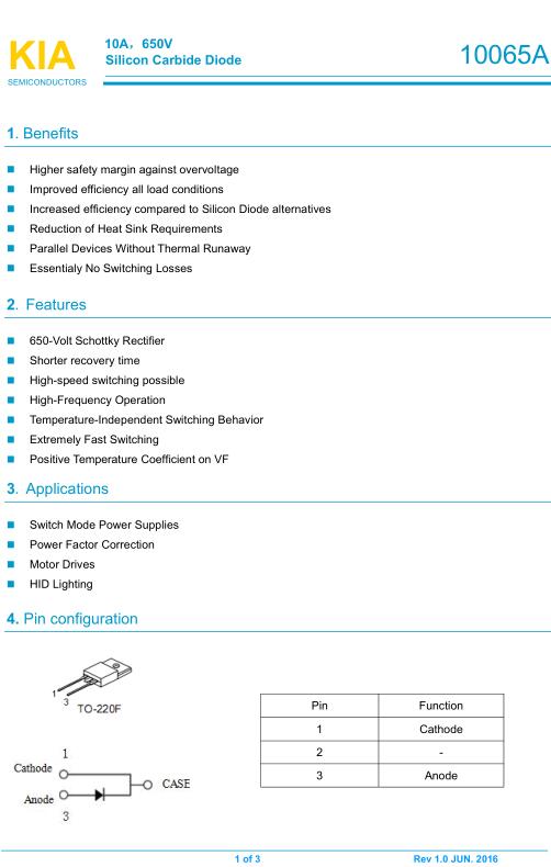 KSF10065A 10A/650V PDF資料及現貨供應廠家-KIA MOS管