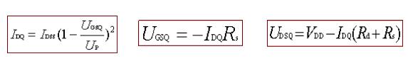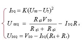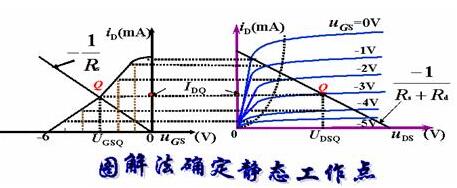 將轉(zhuǎn)移性的近似函數(shù)式與根據(jù)電路列出的直流電壓方程聯(lián)立,就可求解靜態(tài)工作點(diǎn)。