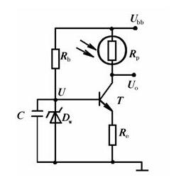 通常,當(dāng)RL?R時,流過光敏電阻的電流基本不變,此時的偏置電路稱為恒流電路。然而,光敏電阻自身的阻值已經(jīng)很高,再滿足恒流偏置的條件就難以滿足電路輸出阻抗的要求,為此,可引入如下圖所示的晶體管恒流偏置電路。