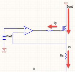 采樣電阻Rs、運放構成一比較放大電路,MOS管輸出回路的電流經RS轉換成電壓后,反饋到運放反向端實現控制vgs,從而MOS管輸出回路的電流。當給定一個電壓VREF時,如果Rs上的電壓小于 VREF,也就是 運放的-IN小于+IN,運放加大輸出,使MOS導通程度加深,使MOS管輸出回路電流加大。如果 Rs 上的電壓大于 VREF時,-IN大于+IN,運放減小輸出,也就MOS管輸出回路電流,這樣電路最終維持在恒定的給值上,也就實現了恒流工作。