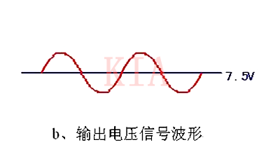 正常運行中,輸出信號是以7.5V為零基準的幅度變化的正弦波信號(信號的直流成份仍為7.5V)。