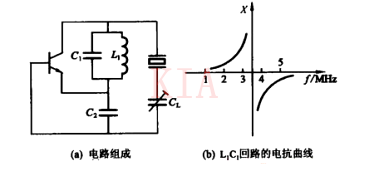 上圖中石英晶體與CL支路呈電感特性,以石英晶體、C2以及L1C1回路一起構成三點式振蕩器,根據三點式振蕩器的組成原則(射同它異),L1C1諧振回路應呈容性。