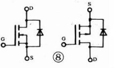 為防止MOSFET接電感負載時,在截止瞬間產生感應電壓與電源電壓之和擊穿MOSFET,一般功率MOSFET在漏極與源極之間內接一個快速恢復二極管,如圖8所示。