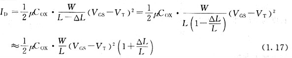 如圖1.29所示,設(shè)溝道端與漏區(qū)端之間耗盡層的長(zhǎng)度為△L,那么漏極電流可表示為