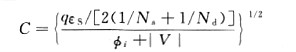 其中,εs≈1.04pF/cm表示硅的介電常數,εs≈εoKs,這里εo表示自由空間( FreeSpace)的介電常數(εo≈8.86X10-14F/cm);Ks≈ll.7表示硅的相對介電常數(有時為了簡單也稱為介電常數);Na(Nd)表示每立方厘米中受主原子(施主原子)的數量。