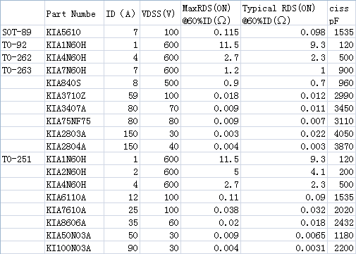 常用n型mos管型號(hào)大全 型號(hào)參數(shù)等