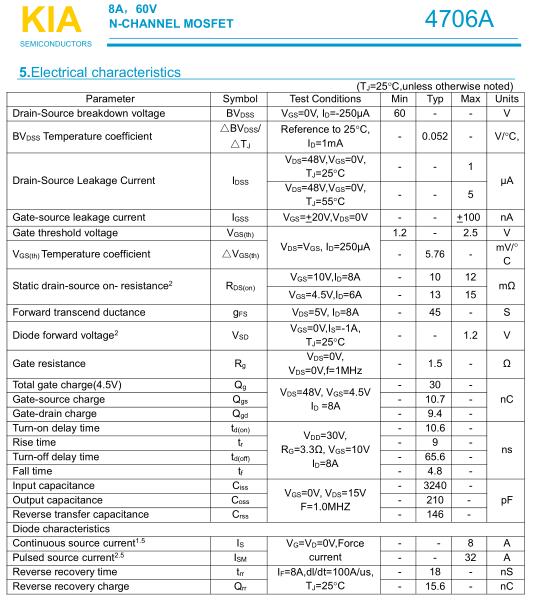 KIA100N03A、KIA3306A、KIA3306B、KIA4706A等