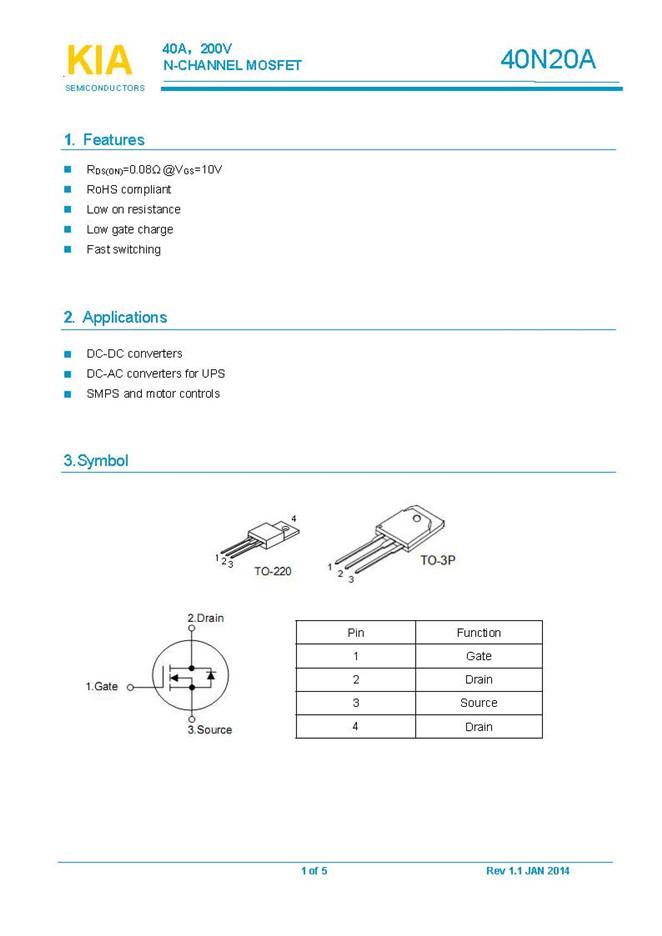 參數(shù): ID(A): 40 BVDSS(V): 200 RDS(ON): 0.1 Qg(nC): 50 Package: TO-220、TO-3P