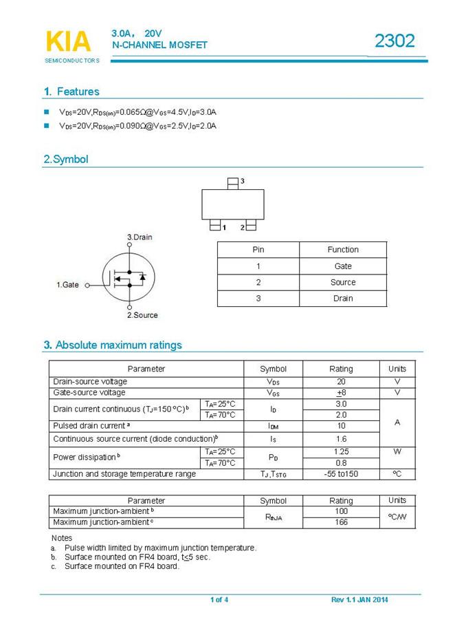 參數: ID(A): 3 BVDSS(V): 20 RDS(ON): 0.065 Qg(nC): 10 Package: SOT-23