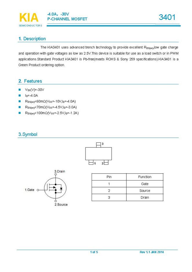 參數: ID(A): -4    BVDSS(V): -30    RDS(ON): 0.06    Qg(nC): 9.4    Package: SOT-23