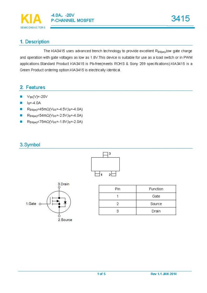 參數: ID(A): -4 BVDSS(V): -16 RDS(ON): 0.045 Qg(nC): 17.2 Package: SOT-23