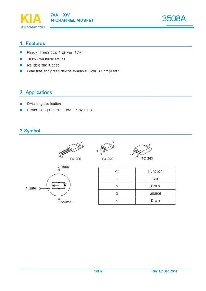 參數(shù): ID(A): 70 BVDSS(V): 80 RDS(ON): 0.011 Qg(nC): 60 Package: TO-252、TO-263、TO-220