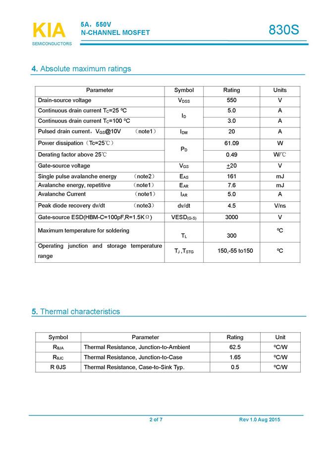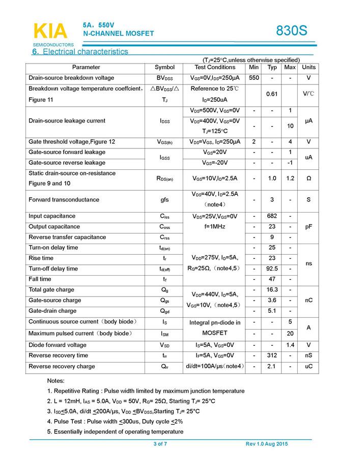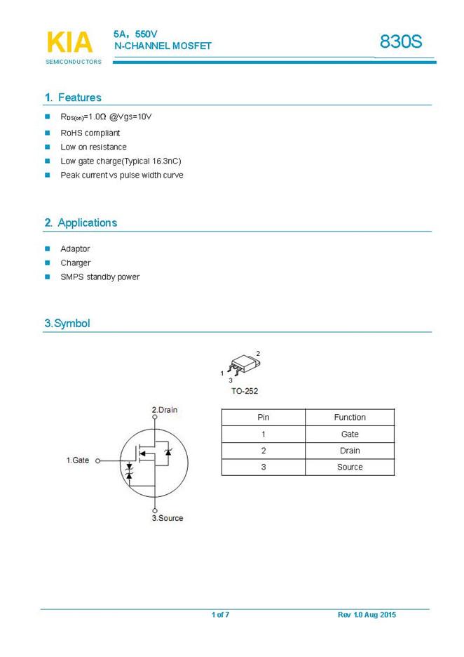 參數: ID(A): 5    BVDSS(V): 550    RDS(ON): 1    Qg(nC): 16.3    Package: TO-252