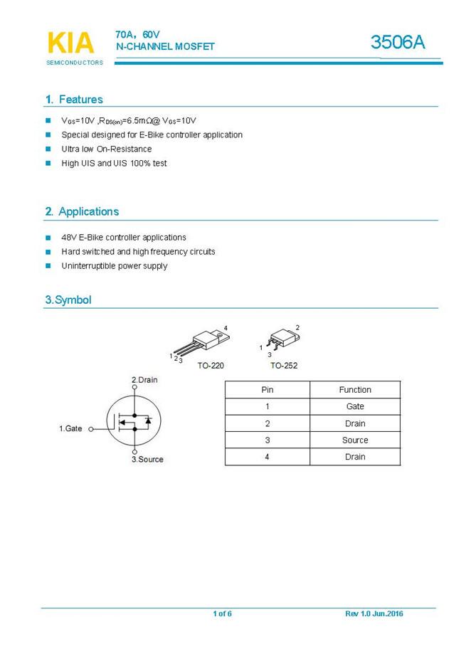 參數: ID(A): 70 BVDSS(V): 60 RDS(ON): 0.0065 Qg(nC): 82 Package: TO-220 TO-252