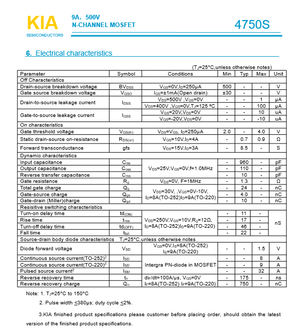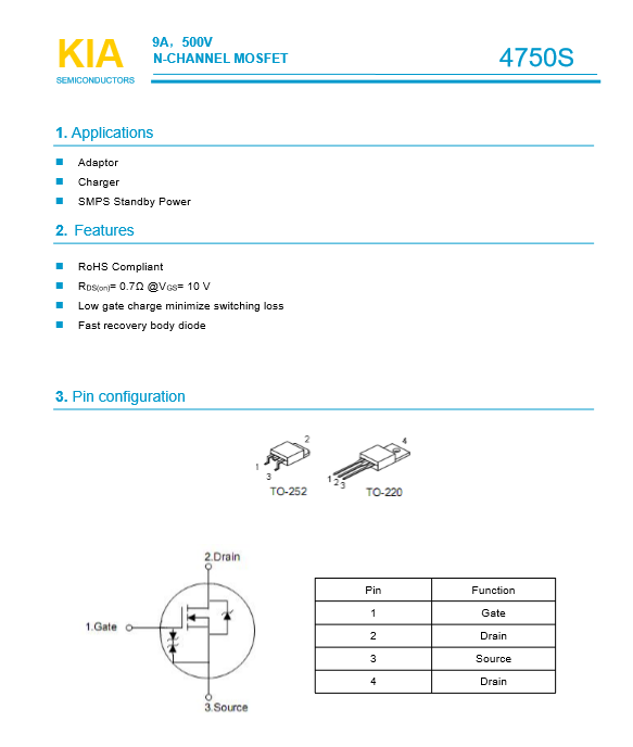 參數: ID(A): 9 BVDSS(V): 500 RDS(ON): 0.7 Qg(nC): 24 Package: TO-252 TO-220