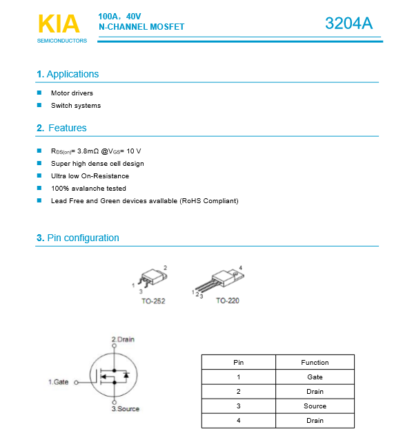 參數: ID(A): 90 BVDSS(V): 40 RDS(ON): 0.0038 Qg(nC): 55 Package: TO-252 TO-3204A