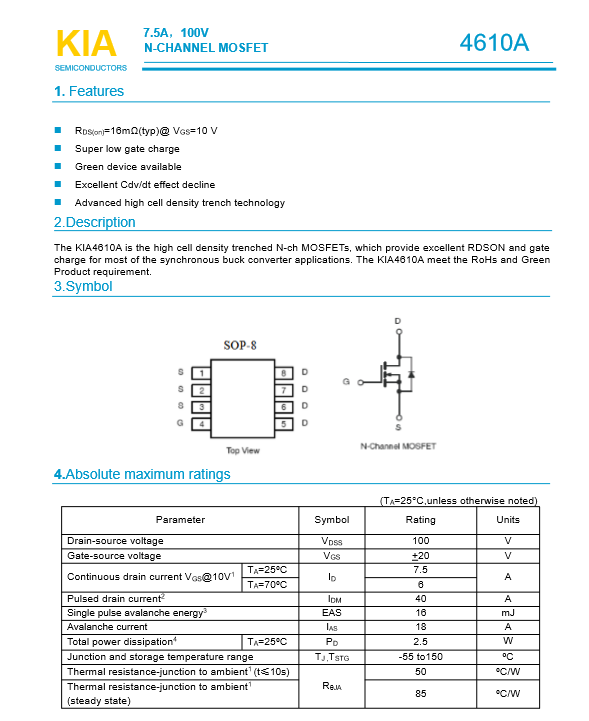 參數(shù): ID(A): 7.5 BVDSS(V): 100 RDS(ON): 0.018 Qg(nC): 36 Package: SOP-8