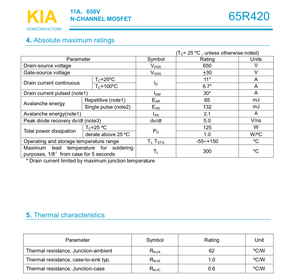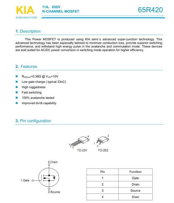 參數: ID(A): 11    BVDSS(V): 650    RDS(ON): 0.38    Qg(nC): 33    Package: TO-251、252