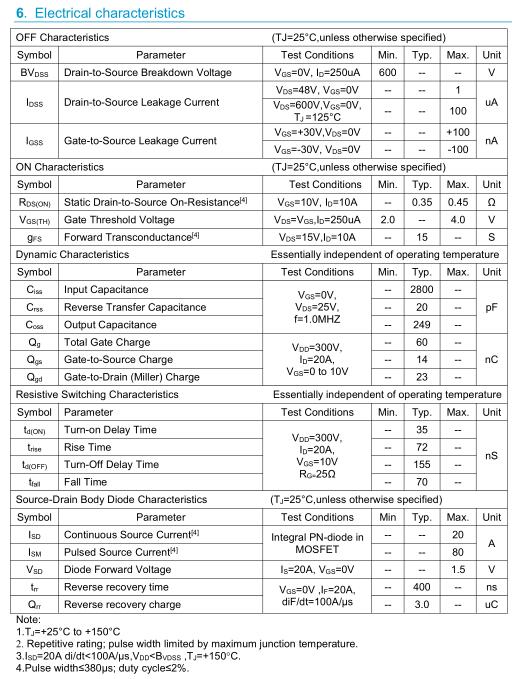 參數(shù): ID(A): 20 BVDSS(V): 600 RDS(ON): 0.19 Package: TO-220F