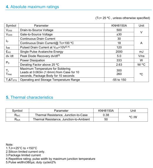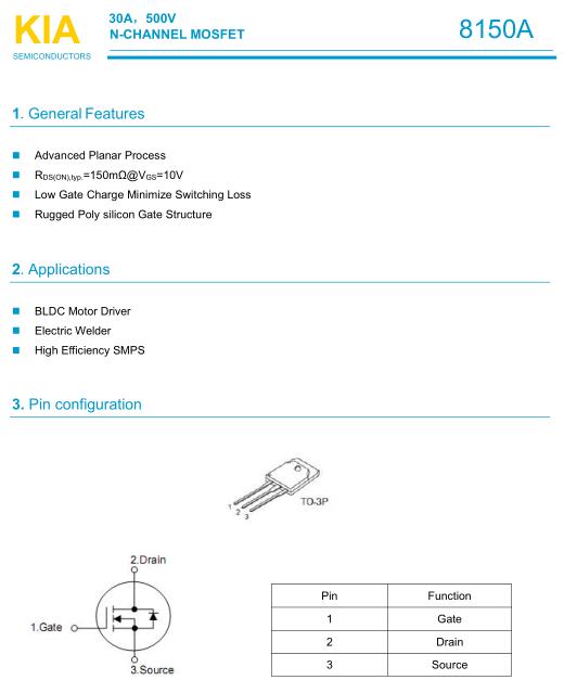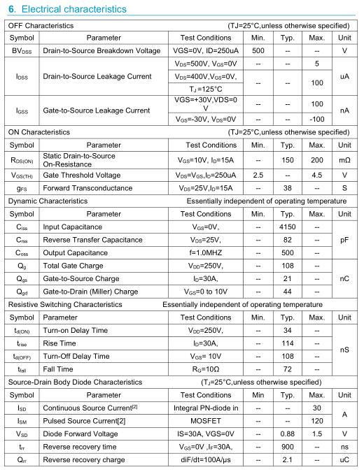 參數: ID(A): 30 BVDSS(V): 500 RDS(ON): 0.2 Qg(nC): 108 Package: TO-3P