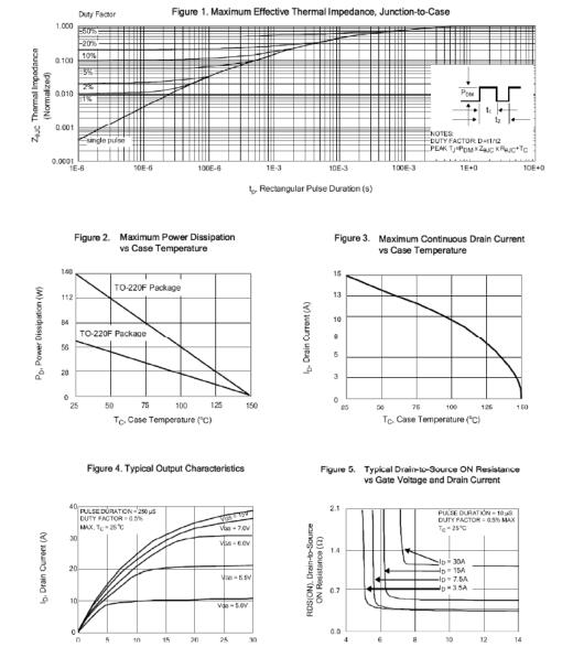 參數: ID(A): 15 BVDSS(V): 500 RDS(ON): 0.33 Qg(nC): 46 Package: TO-220F
