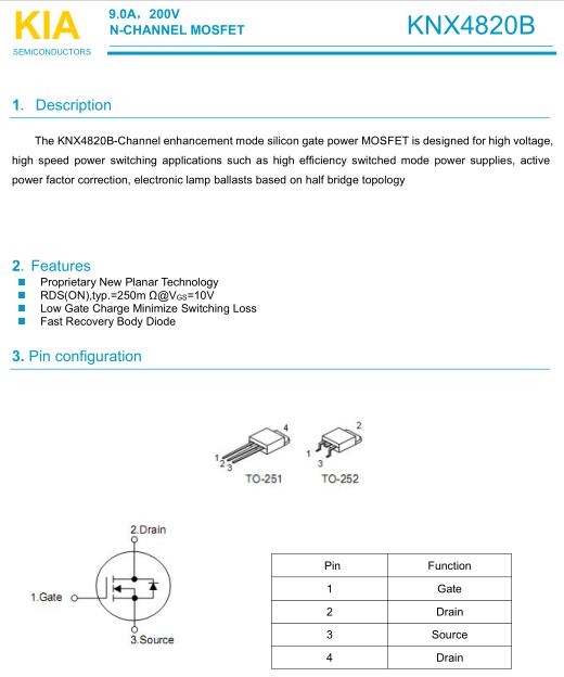 參數: ID(A): 9 BVDSS(V): 200 RDS(ON): 250 Qg(nC): 28 Package: TO-252