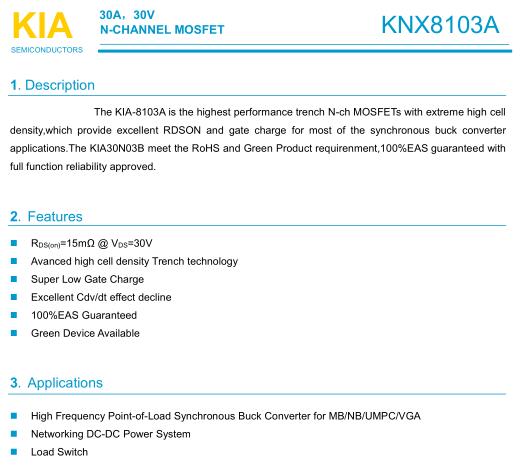 參數: ID(A): 30 BVDSS(V): 30 RDS(ON): 15 Qg(nC): 7.2 Package: TO-252