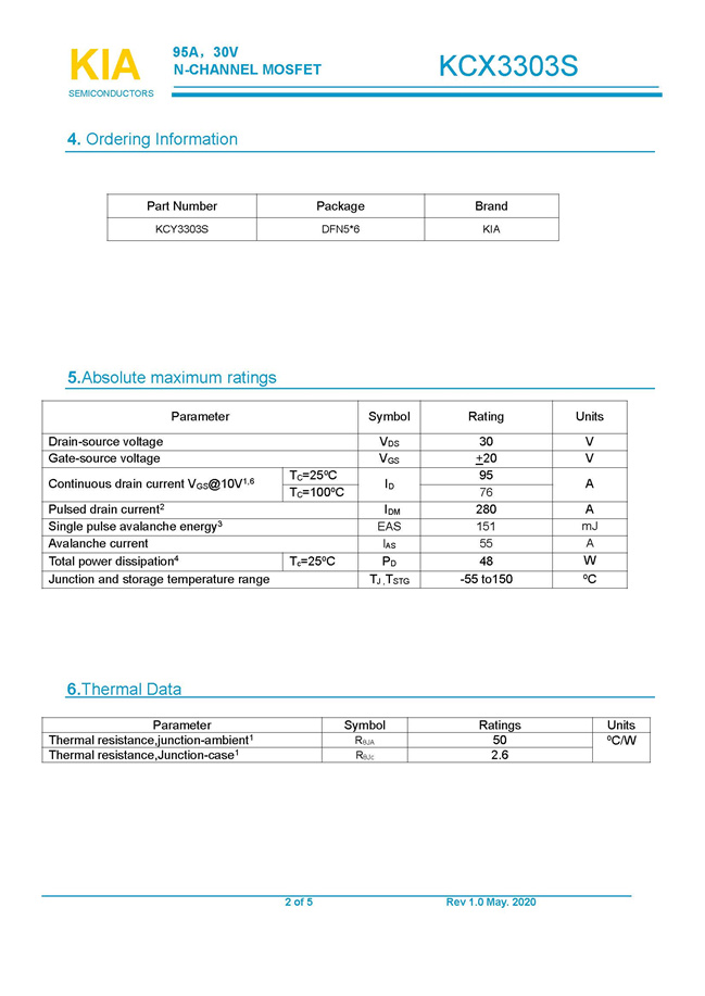 參數(shù): ID(A): 95 BVDSS(V): 30 RDS(ON): 2.2 Qg(nC): 20 Package: DFN5*6