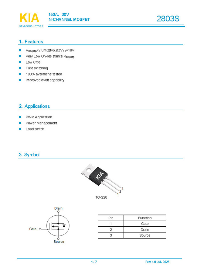參數: ID(A): 150    BVDSS(V): 30    RDS(ON): 2    Qg(nC): 92    Package: TO-220S