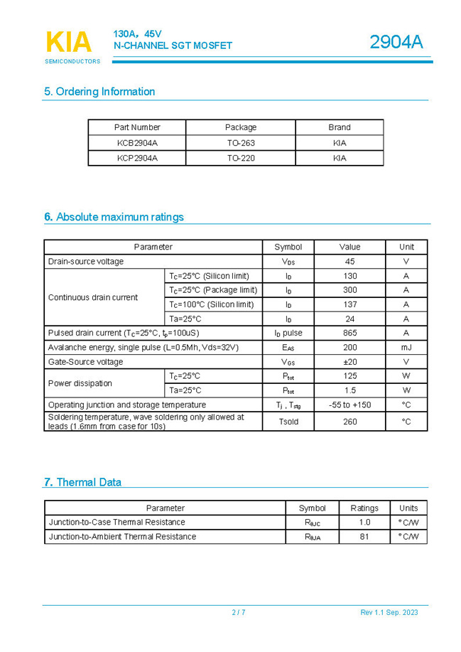 參數: ID(A): 130    BVDSS(V): 45    RDS(ON): 2    Qg(nC): 60    Package: TO-263.TO-220