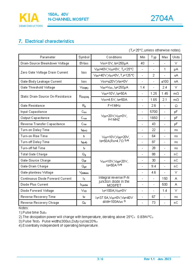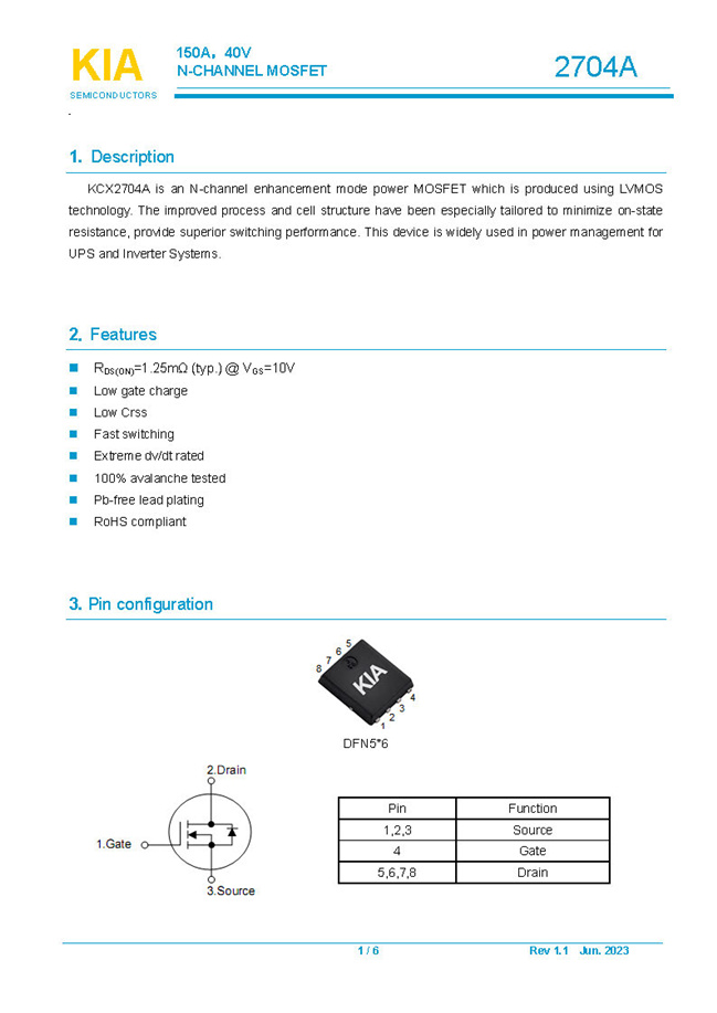 參數: ID(A): 150    BVDSS(V): 40    RDS(ON): 1.25    Qg(nC): 88    Package: DFN5*6