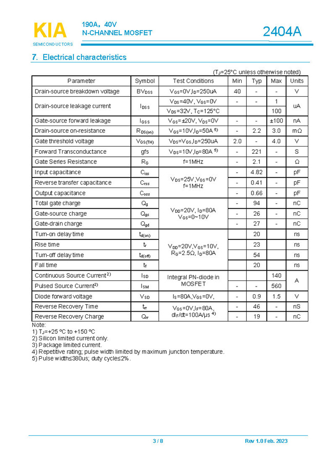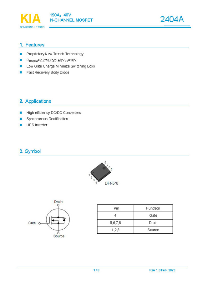 參數: ID(A): 190    BVDSS(V): 40    RDS(ON): 2.2    Qg(nC): 94    Package: DFN5*6