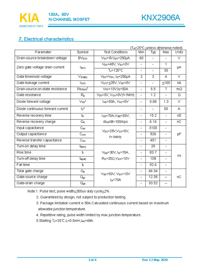參數: ID(A): 130 BVDSS(V): 60 RDS(ON): 5.5mΩ Qg(nC): 66.34 Package: TO-252.TO-263