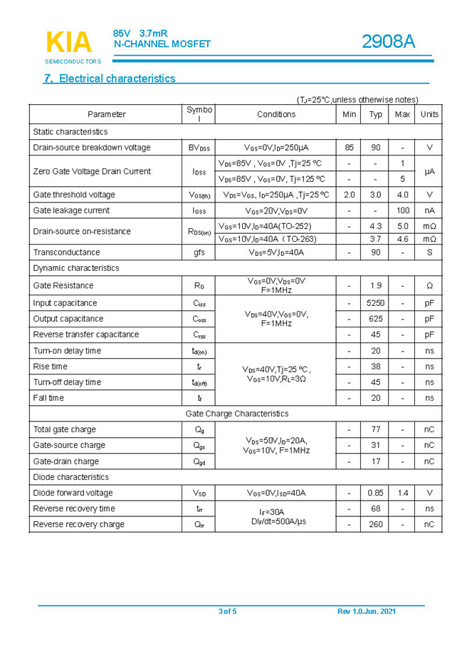 參數: ID(A): 130/110    BVDSS(V): 85    RDS(ON): 3.7mΩ    Qg(nC): 77    Package: TO-252.TO-263