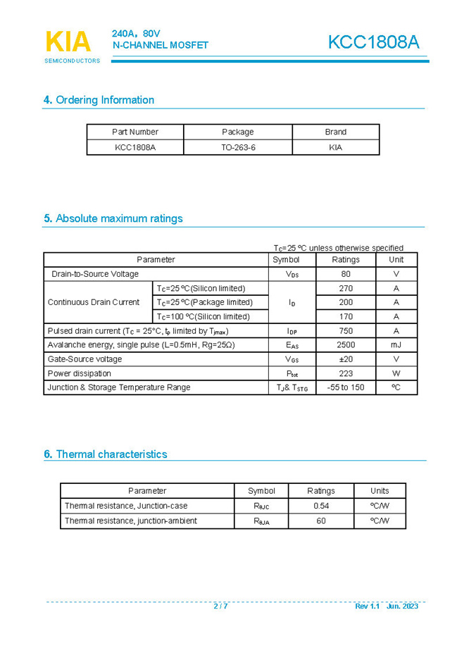 參數: ID(A): 240 BVDSS(V): 80 RDS(ON): 1.7mΩ Qg(nC): 207 Package: TO-263-6L