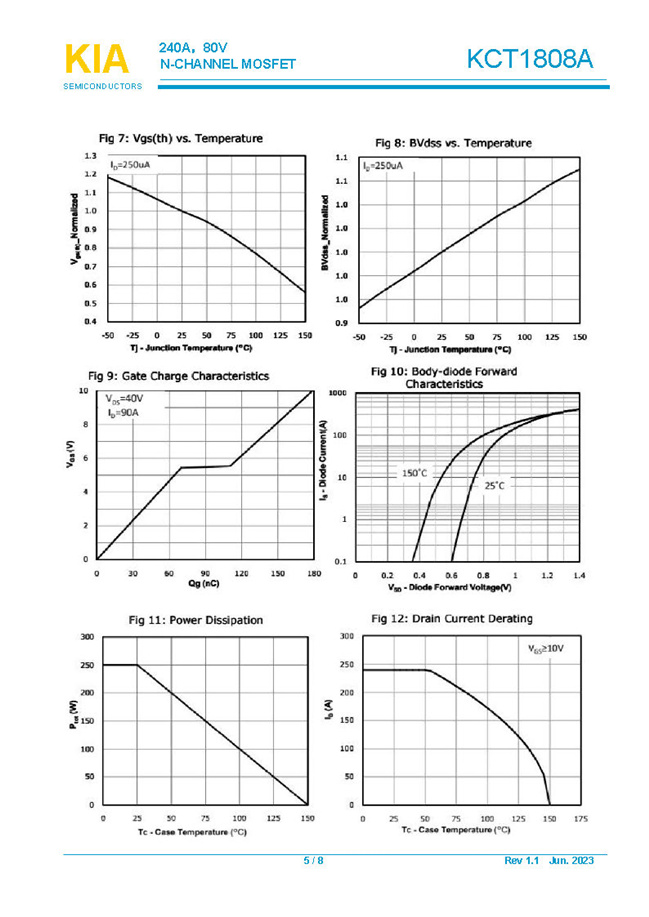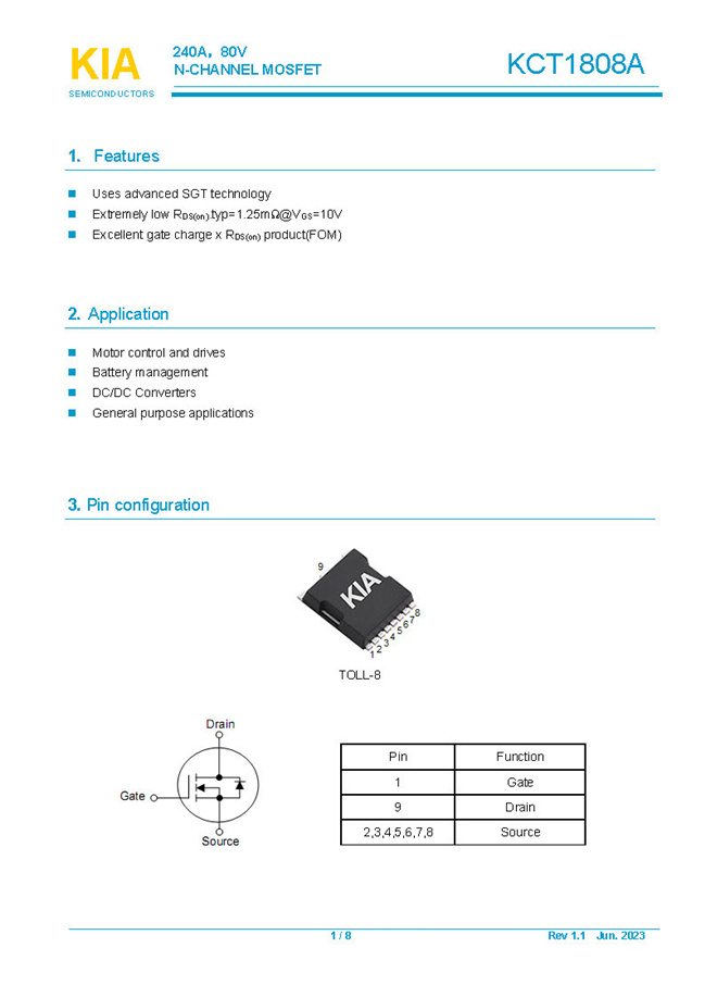 參數: ID(A): 240 BVDSS(V): 80 RDS(ON): 1.25mΩ Qg(nC): 205 Package: TOLL-8