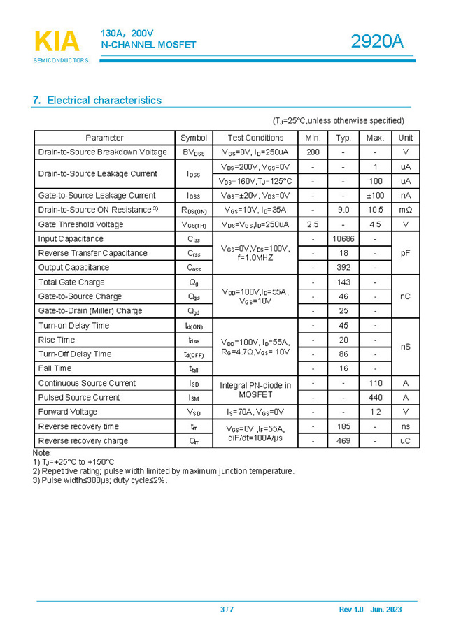 參數: ID(A): 130    BVDSS(V): 200    RDS(ON): 9mΩ    Qg(nC): 143    Package: TO-263.TO-220.TO-247