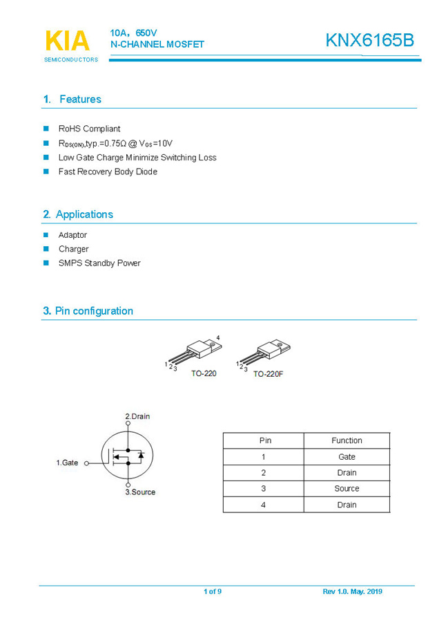 參數(shù): ID(A): 10 BVDSS(V): 650 RDS(ON): 0.75Ω Qg(nC): 30 Package: TO-220.TO-220F
