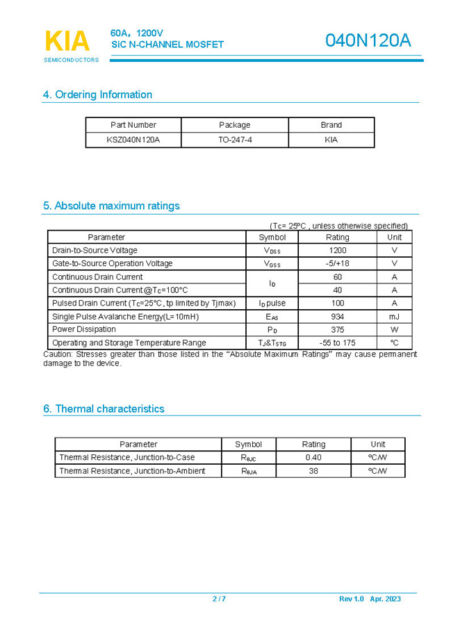 參數: ID(A): 60 BVDSS(V): 1200 RDS(ON): 40mΩ Qg(nC): 148 Package: TO-247-4