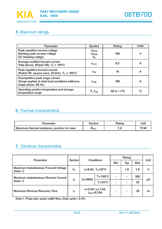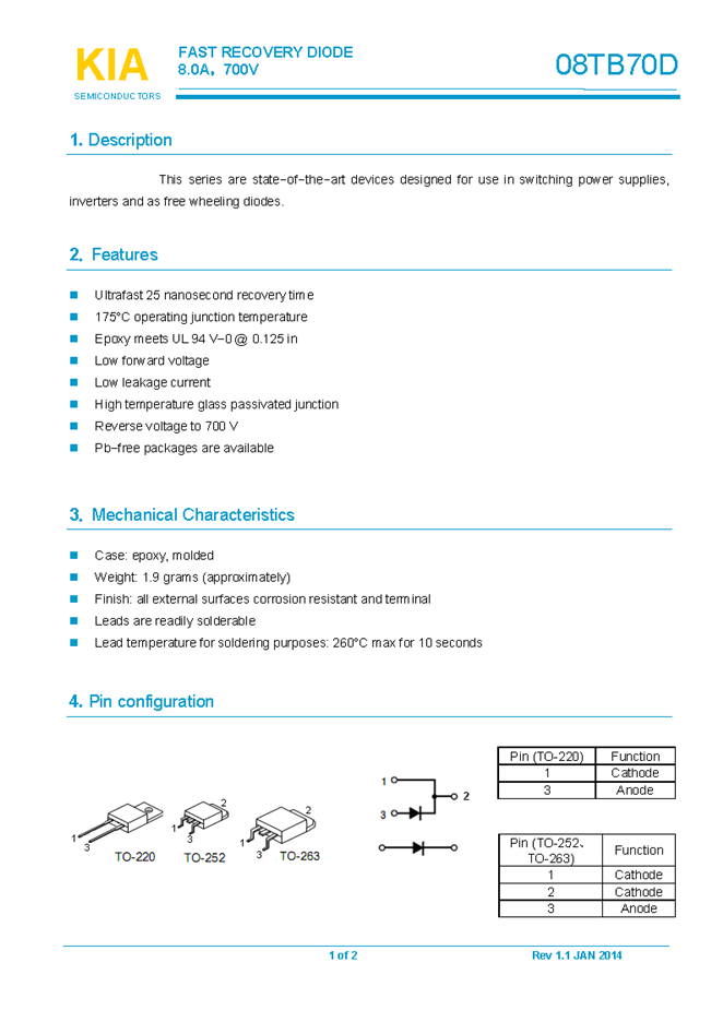 參數: VR(V): 700V    IF(A): 8A    Trr(ns): 25NS    Package: TO-220、252、263