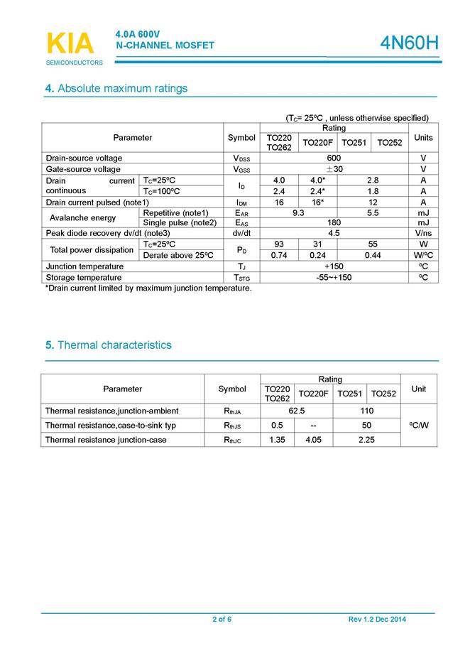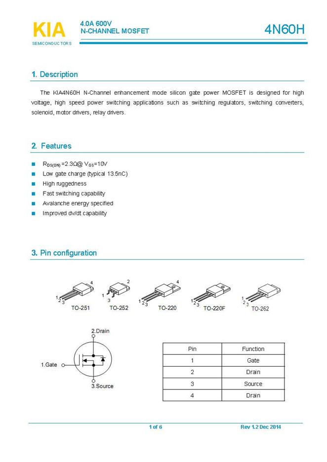 參數(shù): ID(A): 4 BVDSS(V): 600 RDS(ON): 2.7 Qg(nC): 13.5 Package: TO-251、TO-252、TO-220、TO-220F、TO-262