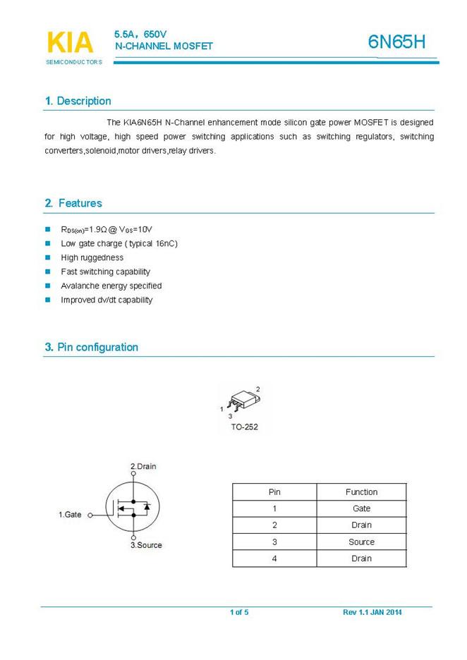 參數: ID(A): 6 BVDSS(V): 650 RDS(ON): 2.2 Qg(nC): 16 Package: TO-252、TO-220、TO-220F