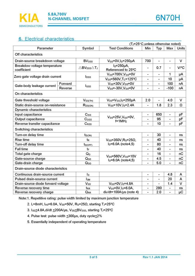 參數: ID(A): 5.8    BVDSS(V): 700    RDS(ON): 2.3    Qg(nC): 16    Package: TO-251、TO-252、TO-220F