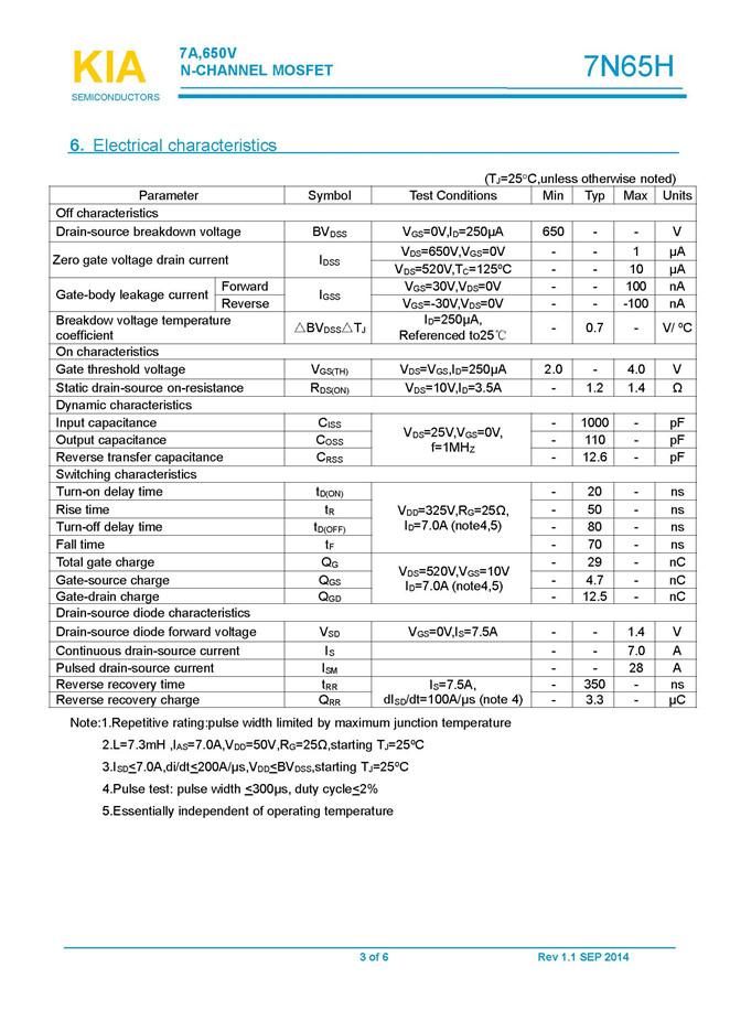參數(shù): ID(A): 7 BVDSS(V): 650 RDS(ON): 1.4 Qg(nC): 29 Package: TO-263、TO-220、TO-220F