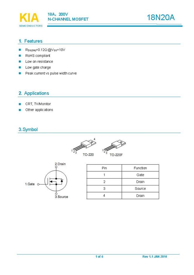 參數: ID(A): 18    BVDSS(V): 200    RDS(ON): 0.18    Qg(nC): 24    Package: TO-220、TO-220F