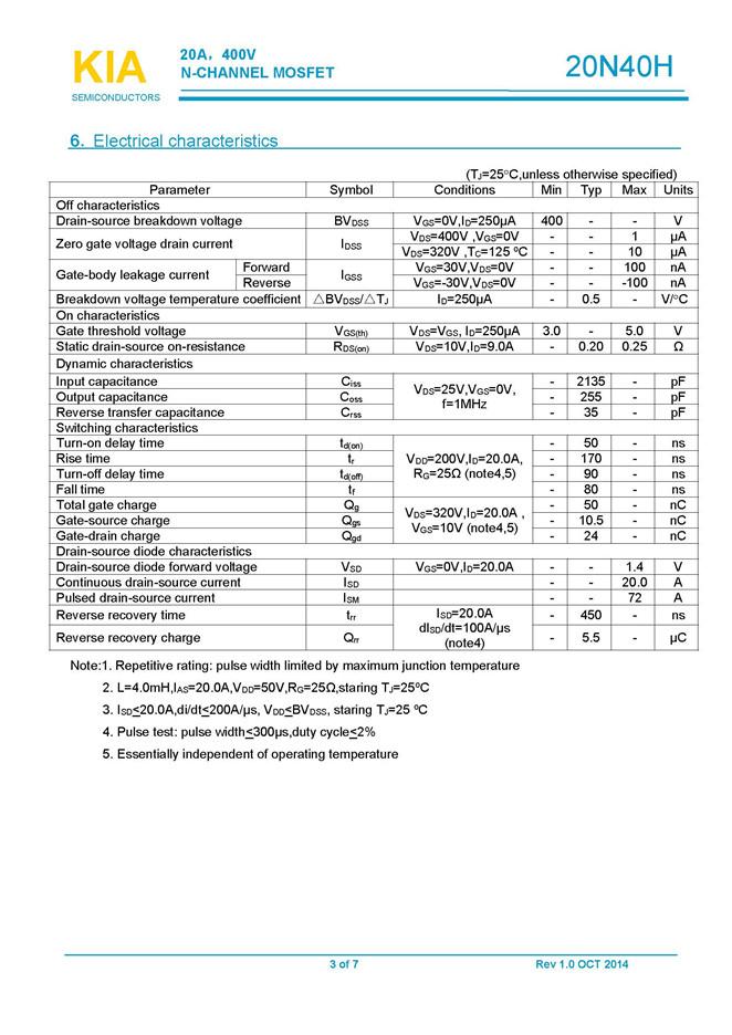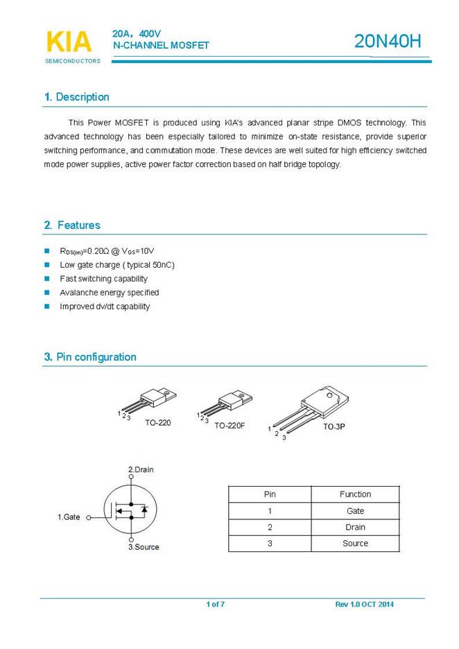 參數: ID(A): 20 BVDSS(V): 400 RDS(ON): 0.25 Qg(nC): 50 Package: TO-220、TO-220F、TO-3P